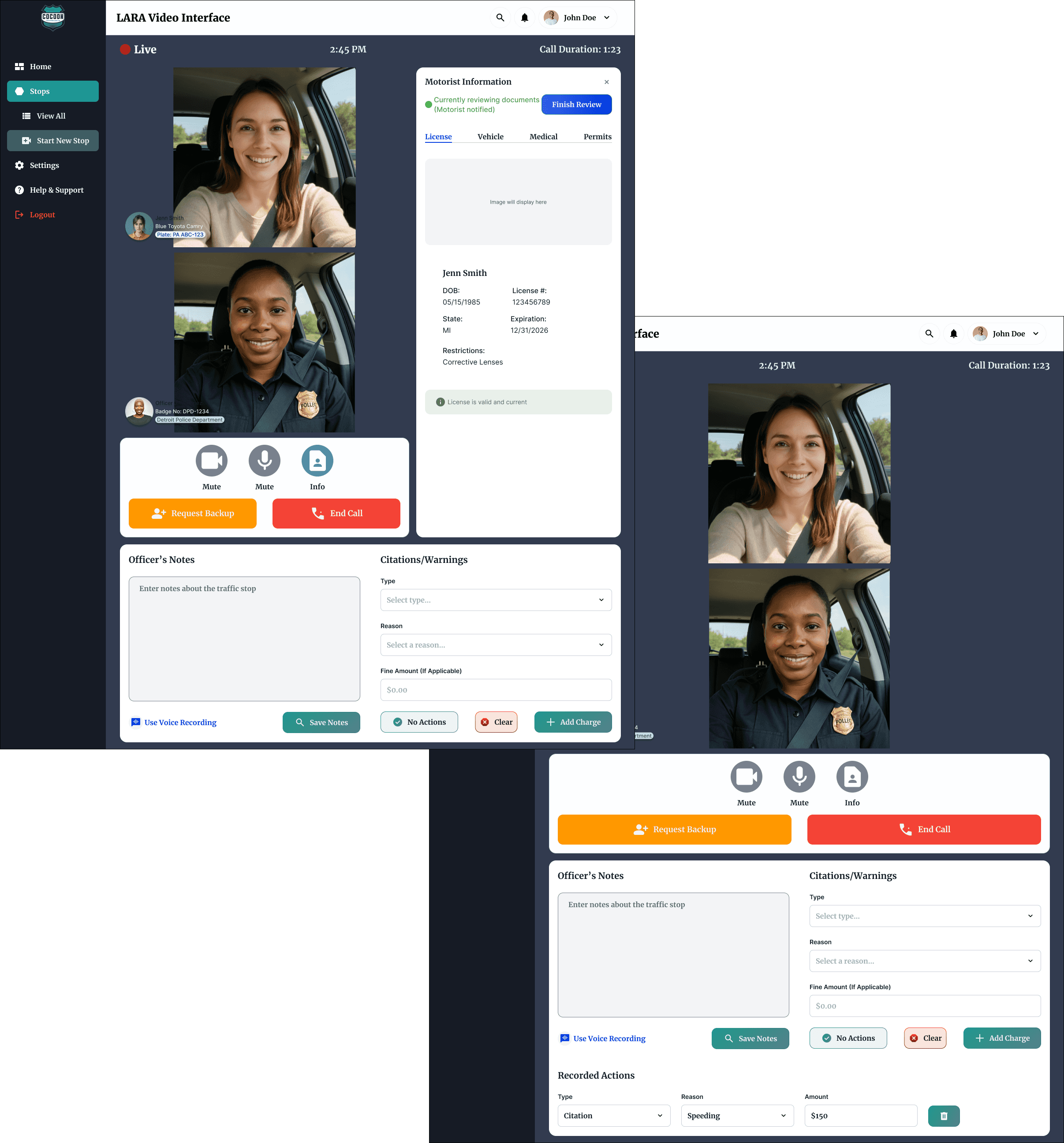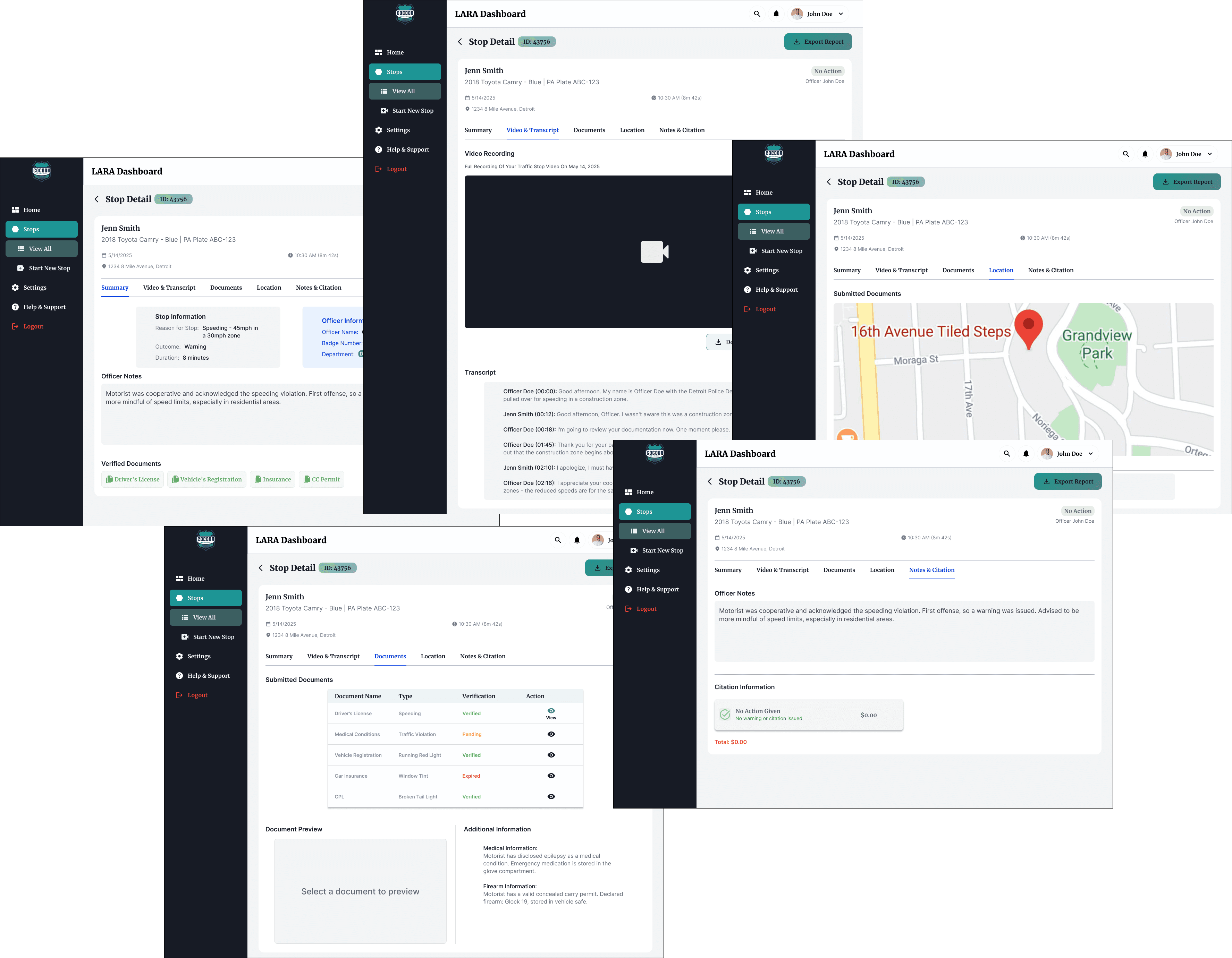 Immediate Access, Zero Friction: Stop detail pages provide immediate access to full video recordings, transcripts, officer notes, and all interaction data.