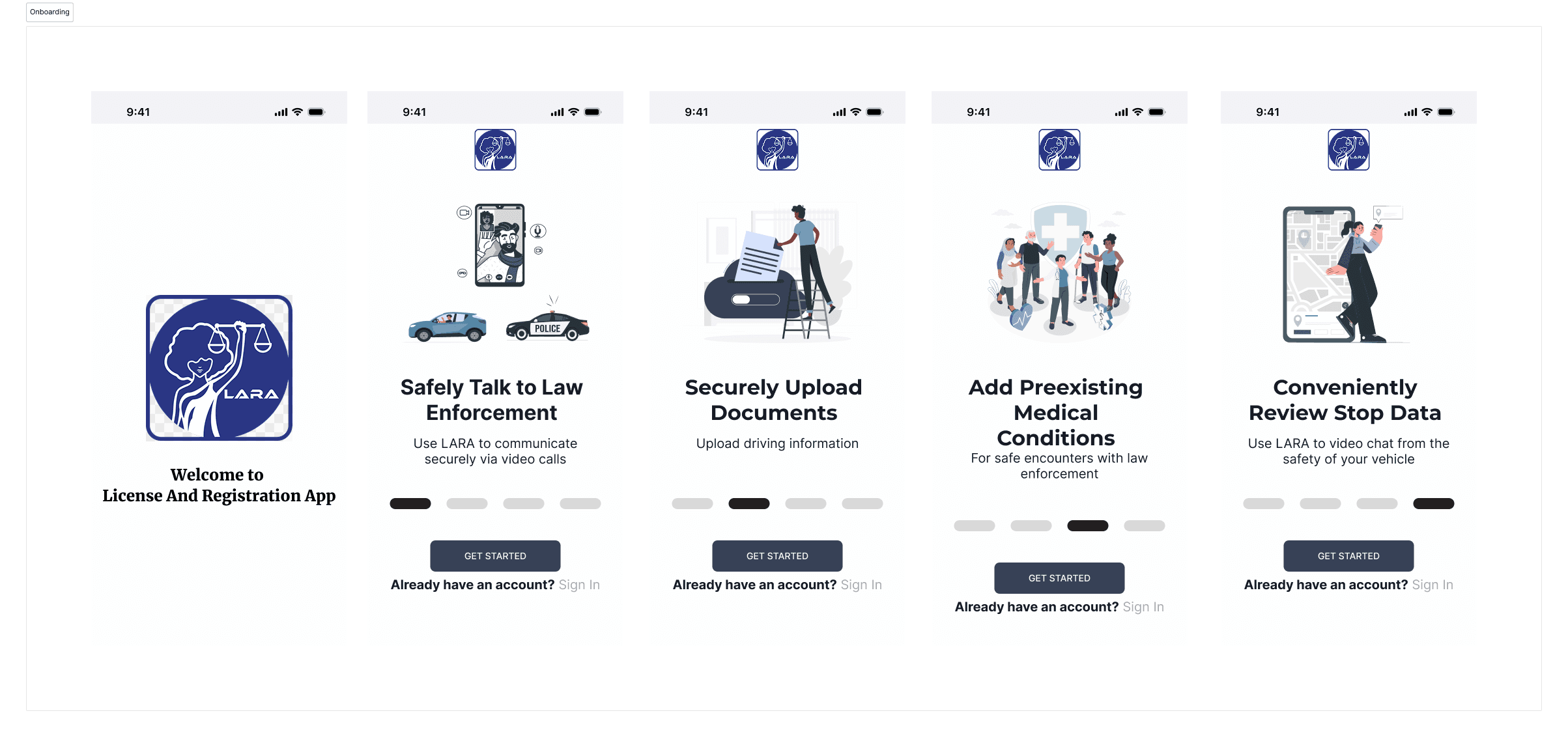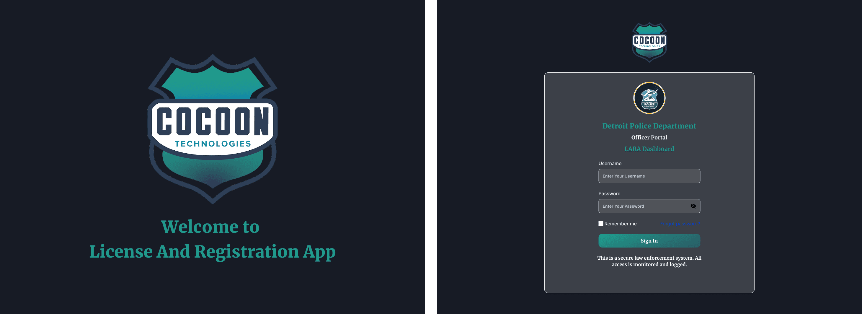 Login flow: No in-app onboarding needed—officers receive credentials from their admin and training happens during department onboarding, not in the application.