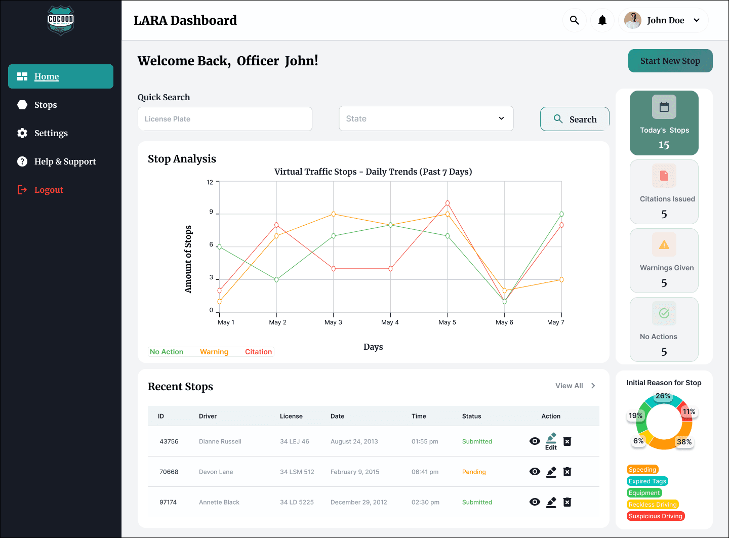 Patrol-focused data: Replaced admin metrics with actionable officer information (software customization per municipality)